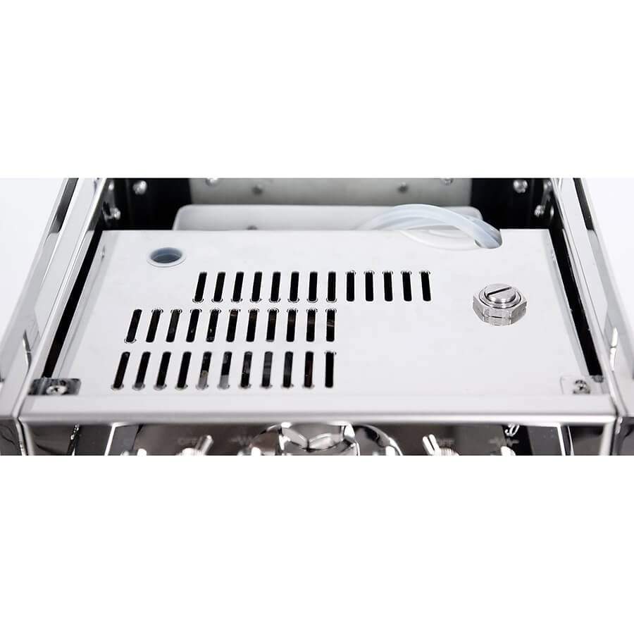 While the QM67 cannot be plumbed in, the large three-liter reservoir can be easily accessed with the hinged cup warming tray, allowing you to refill your water tank without the need to remove the warming tray or move your cups. When your reservoir is low, the low water sensor will audibly alert you to refill. In addition to the easily accessed reservoir with convenient low-water sensor, your expansion valve adjustment to alter pump pressure of your vibratory pump can be found underneath your cup warming tray.